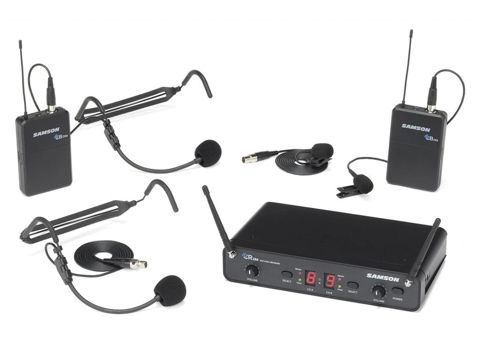 Dvoukanálový UHF bezdrátový systém Presentation představuje profesionální a moderní řešení pro bezdrátový přenos zpěvu nebo mluveného slova. Systém je vybaven dvěma klopovými mikrofony LM5 a dvěma hlavovými mikrofony HS5. Pokročilá UHF technologie umožňuje současný provoz až 24 stanic, to znamená současnou produkci až 48 uživatelů. Pokud je Vaším pódiem něco okolo fotbalového stadiónu, nemusíte mít obavy. Úctyhodný dosah 75m umožňuje využití i na těch největších. Jistě též oceníte pokročilé funkce, jako například automatickou synchronizaci mezi vysílačem a přijímačem za pomoci infračerveného paprsku, která slouží k nalezení optimálního přenosového kanálu. Uživatelsky přátelsky zpracovaný přední panel přijímače CR288 nabízí rychlý a přehledný obraz aktuálního nastavení. Jak jsme již zmínili výše, k výběru optimálního přenosového kanálu slouží dvě tlačítka Select, která spustí automatickou synchronizaci infračerveným paprskem mezi vysílačem a přijímačem. Aktuálně zvolený kanál je poté zobrazen za pomoci 7-segmentového LED ukazatele. Pokud dojde k přebuzení signálu, je tato skutečnost indikována diodami Peak. Protože se jedná o přenos mikrofonního signálu, jsou nezbytností dva symetrické výstupy s konektorem XLR pro přenos signálu do mixu. Navíc je zde i nesymetrický výstup s konektorem jack. V balení nalezneme obsahuje dva klopové mikrofony LM5 a dva hlavové mikrofony HS5, které lze používat v libovolné kombinaci. Všechny mikrofony mají uzamykatelné mini XLR konektory. Vysílače jsou napájeny dvěma AA tužkovými bateriemi a jsou schopny až 8 hodinového provozu.