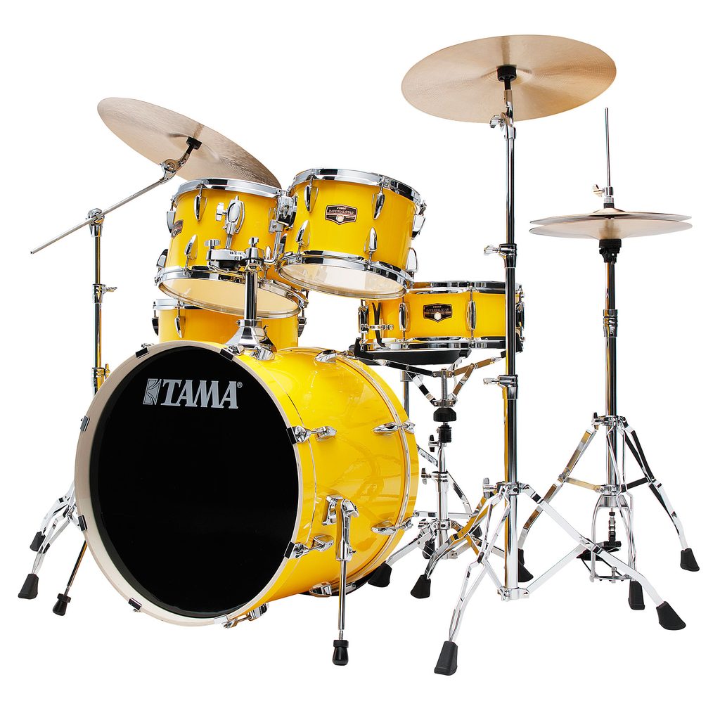 Kompletní bicí souprava Tama Imperialstar včetně hardware a činelů, barva žlutá Electric Yellow