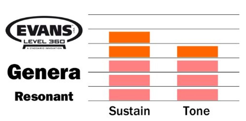 Rezonanční čirá blána na tom z řady Evans Genera. Je vyrobena z jedné vrstvy fólie silné 10 mil/0,254 mm. Má otevřený, plný, expresivní zvuk. Přirozeným způsobem posiluje jasné tóny a projekci zvuku bubnu zvýrazněním vyšších harmonických tónů a zároveň ponechává vysokou úroveň sustainu. Ideální je v kombinaci s dvouvrstvou úhozovou blánou.