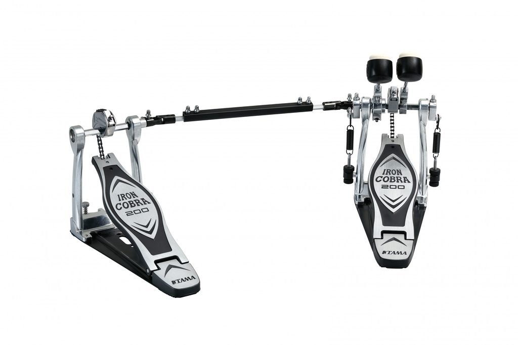 Dvojitý pedál k basovému bubnu z řady Tama Iron Cobra 200. Principy výroby těchto pedálů jsou stejné jako u vlajkových lodí Iron Cobra 900. Dostáváte tak kvalitní výkonný pedál za dostupnou cenu. Řetězový převod Power Glide dává pedálu hladký a lehký chod, při hře netrpíte pocitem ztráty rychlosti, razance či kontroly úderu. Oba pedály tohoto dvojpedálu mohou být doplněny pružinou Cobra Coil, která zvyšuje rychlost návratu pedálu do výchozí polohy. Beater je dvoustranný (plast/filc).