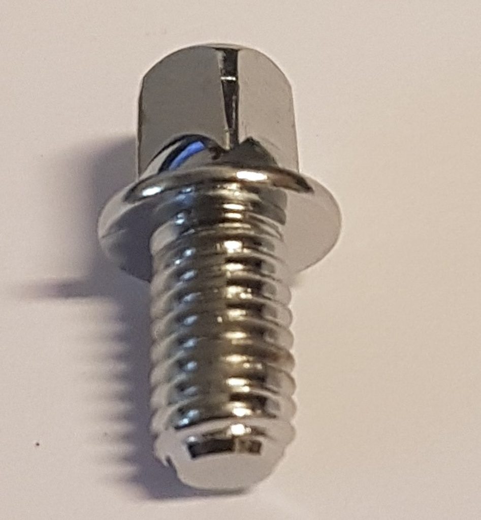 Náhradní šroubek k hardware bicích nástrojů, čtverhranná hlava na ladící klíček, průměr 6 mm, délka závitu 10 mm. Balení 1 ks.