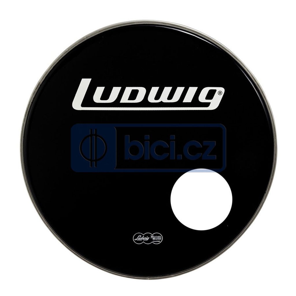 Černá přední blána Ludwig na basový buben s průměrem 18", jednovrstvá. Otvor pro mikrofon o rozměru 6". Bílé nové logo Ludwig.