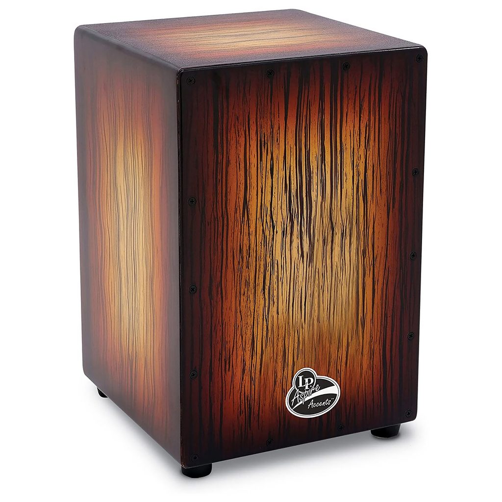 Cajon Latin Percussion z řady LP Aspire. Perkusní nástroje z této řady jsou již dlouho dobře známy jako nástroje s mnoha profesionálními vlastnostmi, odolnou konstrukcí a přitom za velmi dostupné ceny. A to platí i o tomto cajonu Aspire Accents. Má velmi výraznou povrchovou úpravu, která skutečně „akcentuje“ jeho vzhled, je vyroben ze dřeva siamského dubu (gumovník), pěstovaného na ekologických plantážích, jehož dřevo je pro své zvukové vlastnosti velmi oceňováno. Tělo cajonu kombinuje různé styly, aby bylo dosaženo optimálních charakteristik nástroje. Přední úderová deska je připevněna šrouby v peruánském stylu, takže je možné jejich utahováním či povolováním nastavit množství vyšších frekvencí přední desky. K tomu je cajon vybaven vnitřními struníky ve stylu flamenco, což přidává průraznost a charakter bohatým, hlubokým tónům korpusu. Povrchová úprava: proužkovaný sunburst (SBS – Sun Burst Streak). Rozměry: 299 × 305 × 438 mm.