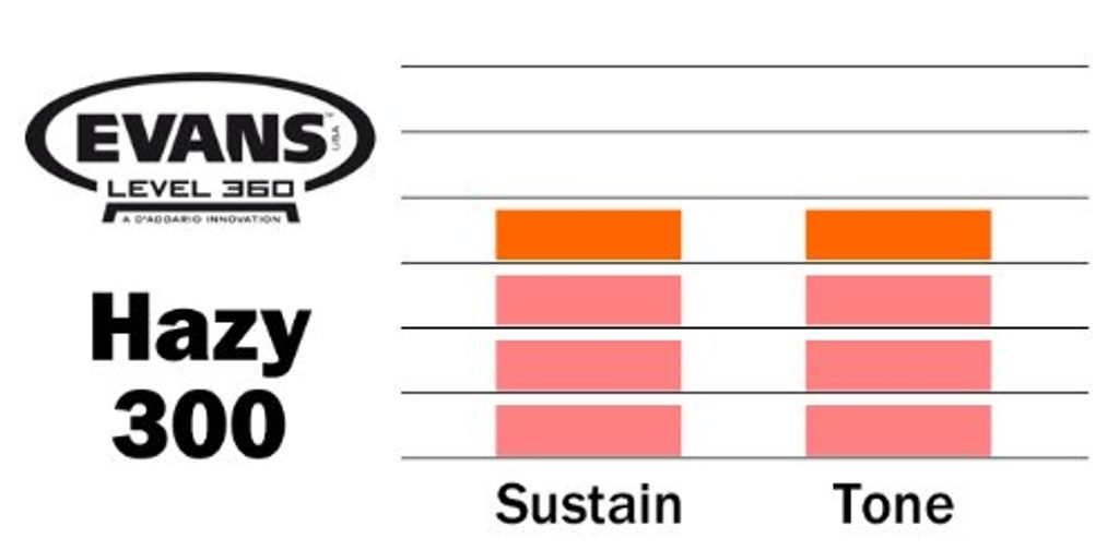 Hazy 300 je nejuniverzálnější rezonanční blána z nabídky Evans. Je 0,076 mm silná a má široký dynamický rozsah a ovlivňuje citlivost malého bubínku při každé hlasitosti hraní. Průměr 14".