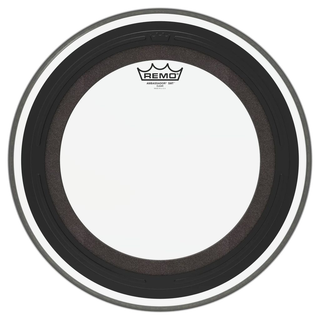 Blána na basový buben Remo z řady Ambassador SMT. Je to průhledná blána vyrobená z jedné vrstvy čiré fólie o síle 10 mil. (0,254 mm). Blána má patentované tlumení Sub Muffl Technology (SMT): jedná se o externě namontovaný tlumicí profil s volně plovoucí akustickou pěnou. S technologií SMT si blána basového bubnu zachová plnou zvukovou charakteristiku, ale má dodatečný atak a posílené nízké frekvence. Technologie SMT umožňuje ladit basový buben v širokém tónovém rozsahu pro různé hudební styly, ale vždy s kontrolovanými vysokými a středními frekvencemi spolu s pevnými a silnými spodními tóny. Proto patří blány na basový buben Remo SMT mezi nejmuzikálnější a nejuniverzálnější předtlumené blány na trhu, a technologie SMT se stává novým průmyslovým standardem.