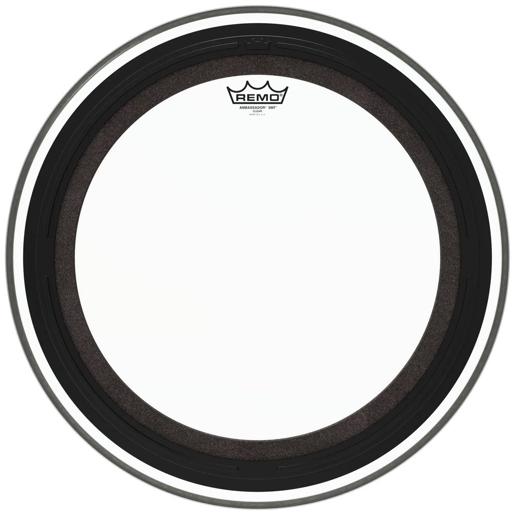 Blána na basový buben Remo z řady Ambassador SMT. Je to průhledná blána vyrobená z jedné vrstvy čiré fólie o síle 10 mil. (0,254 mm). Blána má patentované tlumení Sub Muffl Technology (SMT): jedná se o externě namontovaný tlumicí profil s volně plovoucí akustickou pěnou. S technologií SMT si blána basového bubnu zachová plnou zvukovou charakteristiku, ale má dodatečný atak a posílené nízké frekvence. Technologie SMT umožňuje ladit basový buben v širokém tónovém rozsahu pro různé hudební styly, ale vždy s kontrolovanými vysokými a středními frekvencemi spolu s pevnými a silnými spodními tóny. Proto patří blány na basový buben Remo SMT mezi nejmuzikálnější a nejuniverzálnější předtlumené blány na trhu, a technologie SMT se stává novým průmyslovým standardem.