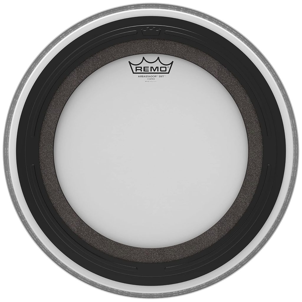 Blána na basový buben Remo z řady Ambassador SMT. Je to pískovaná blána vyrobená z jedné vrstvy fólie o síle 10 mil. (0,254 mm). Blána má patentované tlumení Sub Muffl Technology (SMT): jedná se o externě namontovaný tlumicí profil s volně plovoucí akustickou pěnou. S technologií SMT si blána basového bubnu zachová plnou zvukovou charakteristiku, ale má dodatečný atak a posílené nízké frekvence. Technologie SMT umožňuje ladit basový buben v širokém tónovém rozsahu pro různé hudební styly, ale vždy s kontrolovanými vysokými a středními frekvencemi spolu s pevnými a silnými spodními tóny. Proto patří blány na basový buben Remo SMT mezi nejmuzikálnější a nejuniverzálnější předtlumené blány na trhu a technologie SMT se stává novým průmyslovým standardem.