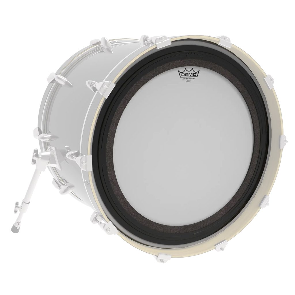 Blána na basový buben Remo z řady Ambassador SMT. Je to pískovaná blána vyrobená z jedné vrstvy fólie o síle 10 mil. (0,254 mm). Blána má patentované tlumení Sub Muffl Technology (SMT): jedná se o externě namontovaný tlumicí profil s volně plovoucí akustickou pěnou. S technologií SMT si blána basového bubnu zachová plnou zvukovou charakteristiku, ale má dodatečný atak a posílené nízké frekvence. Technologie SMT umožňuje ladit basový buben v širokém tónovém rozsahu pro různé hudební styly, ale vždy s kontrolovanými vysokými a středními frekvencemi spolu s pevnými a silnými spodními tóny. Proto patří blány na basový buben Remo SMT mezi nejmuzikálnější a nejuniverzálnější předtlumené blány na trhu a technologie SMT se stává novým průmyslovým standardem.
