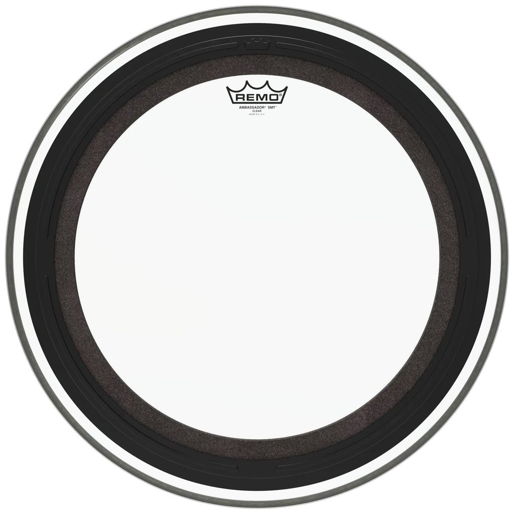 Blána na basový buben Remo z řady Ambassador SMT. Je to průhledná blána vyrobená z jedné vrstvy čiré fólie o síle 10 mil. (0,254 mm). Blána má patentované tlumení Sub Muffl Technology (SMT): jedná se o externě namontovaný tlumicí profil s volně plovoucí akustickou pěnou. S technologií SMT si blána basového bubnu zachová plnou zvukovou charakteristiku, ale má dodatečný atak a posílené nízké frekvence. Technologie SMT umožňuje ladit basový buben v širokém tónovém rozsahu pro různé hudební styly, ale vždy s kontrolovanými vysokými a středními frekvencemi spolu s pevnými a silnými spodními tóny. Proto patří blány na basový buben Remo SMT mezi nejmuzikálnější a nejuniverzálnější předtlumené blány na trhu, a technologie SMT se stává novým průmyslovým standardem.
