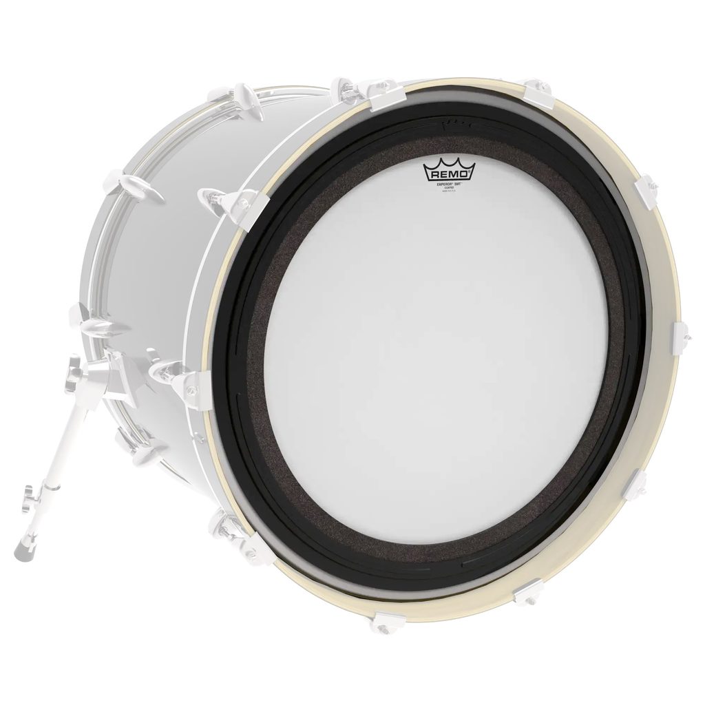 Blána na basový buben Remo z řady Emperor SMT. Je to pískovaná blána vyrobená ze dvou vrstev pískované blány o síle 7 mil. (0,18 mm) a 5 mil. (0,13 mm). Blána má patentované tlumení Sub Muffl Technology (SMT): jedná se o externě namontovaný tlumicí profil s volně plovoucí akustickou pěnou. S technologií SMT si blána basového bubnu zachová plnou zvukovou charakteristiku s dodatečným atakem a nízkými frekvencemi. Technologie SMT umožňuje ladit basový buben v širokém rozsahu s kontrolovanými vysokými a středními frekvencemi spolu s pevnými a silnými spodními tóny. Technologie SMT se stává novým průmyslovým standardem a blány Remo SMT tak patří mezi nejmuzikálnější a nejuniverzálnější předtlumené blány na trhu.