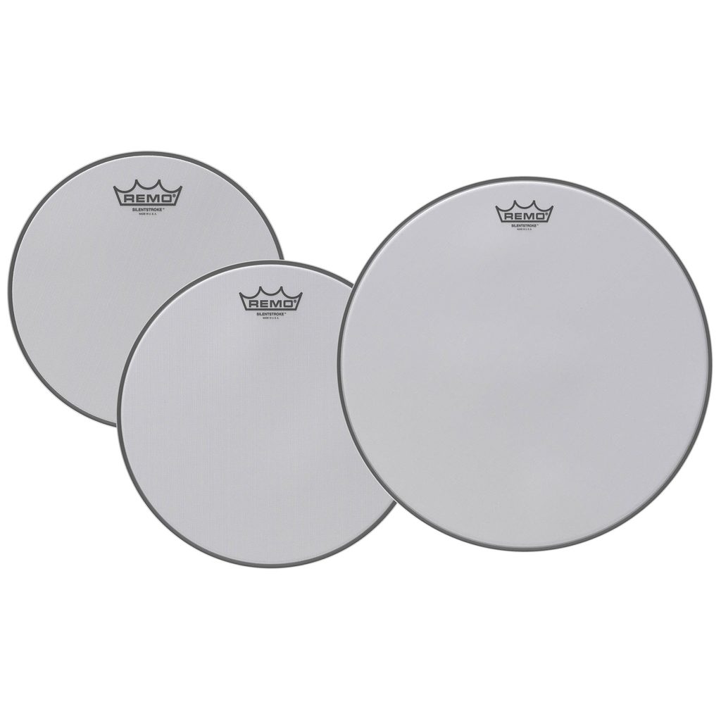 Sada blan Remo pro tomy z řady Silentstroke. Síťové (mesh) blány Remo Silentstroke mají speciální povrchovou úpravu, díky které je ideální pro tiché hraní nebo cvičení tam, kde je standardní hlasitost bicí soupravy problém. Blána je vyrobena z jedné vrstvy odolného síťovaného materiálu, který má jemný tichý zvuk, ale přitom má přirozenou odezvu, odskok a zvukové zabarvení jako klasická blána. Tato sda obsahuje blány s průměry 10", 12" a 16".
