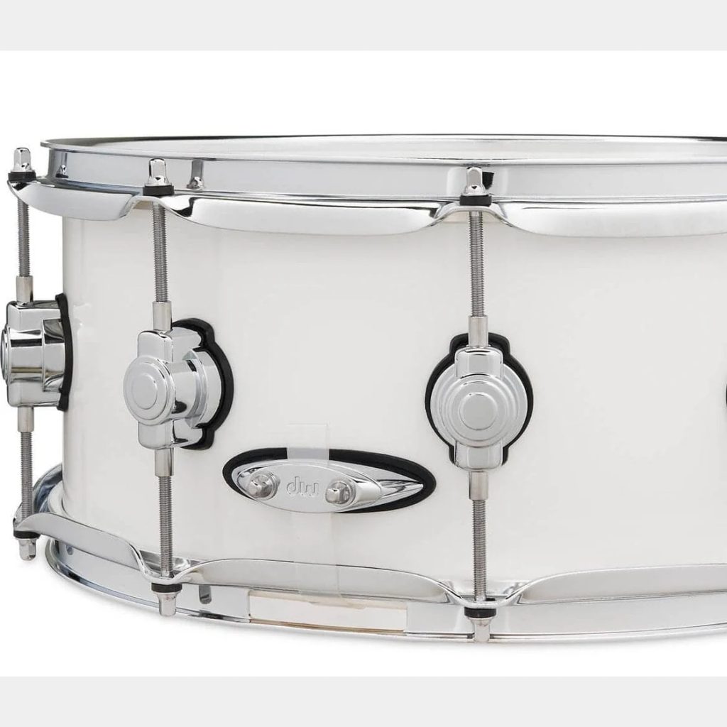 Javorový snare DW z řady Design. Profesionální celojavorové bubny DW Design Series poskytují plnou rezonanční tonalitu, která se dokonale hodí pro širokou škálu hudebních hudebních žánrů. Bubny Drum Workshop Design Series jsou vstupní branou do profesionální řady bicích firmy DW. Snare buben řady Design má konstrukci HVLT z 10 vrstev severoamerického javoru „North American Maple Shells“. Chromované ladicí mušle jsou odlehčené Mini Turret Lugs, ladicí šrouby True Pitch Tuning, mechanismus struníku DW MAG throw-off a True-Tone snare strunění. Snare má plný, rezonanční a teplý zvuk.