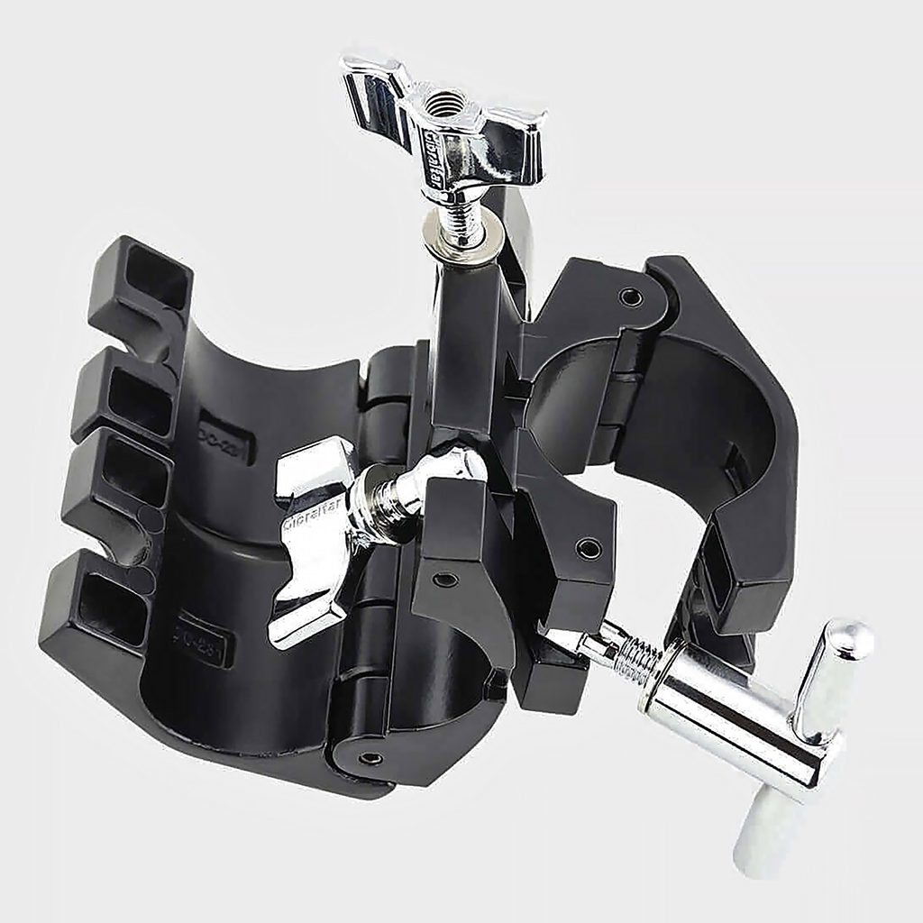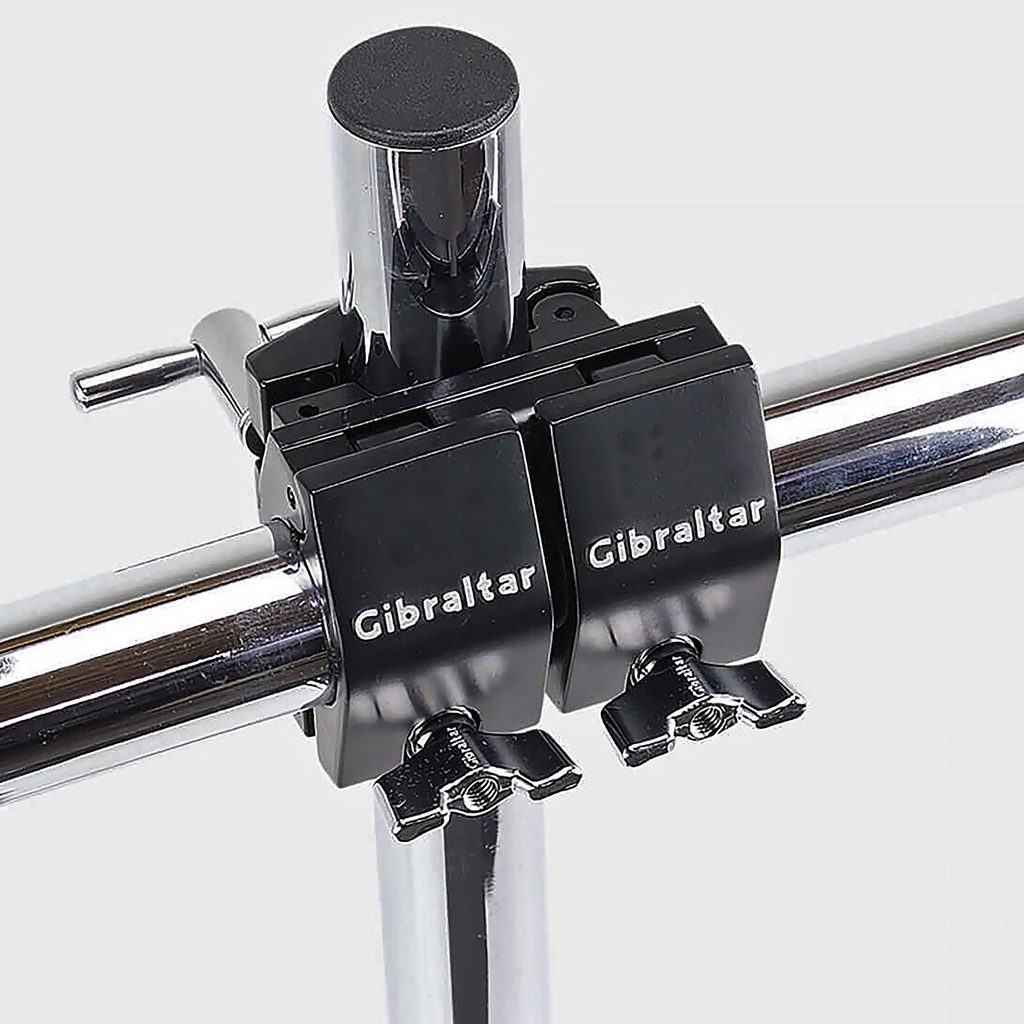 Dvojitá pevná pravoúhlá svorka (clamp) Gibraltar SC-GRSDRA spojuje dvě 1,5" tyče rampy s třetí tyčí v pevném úhlu 90°, což usnadňuje prodloužení racku pomocí hlavních trubek a jejich pevné napojení v horizontálním a vertikálním vedení. Barva svorky černá.
