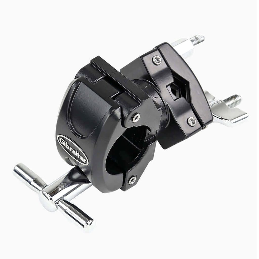 Polohovatelný držák (multiclamp) Gibraltar určený k pro rampy nebo jiné stojanové tyče s průměrem 3,8 cm. Je určen pro uchycení ramínek a držáků bubnů, činelů, perkusí a dalšího příslušenství. Střední část se otáčí pro přesné nastavení náklonu. Černá a chromovaná povrchová úprava.
