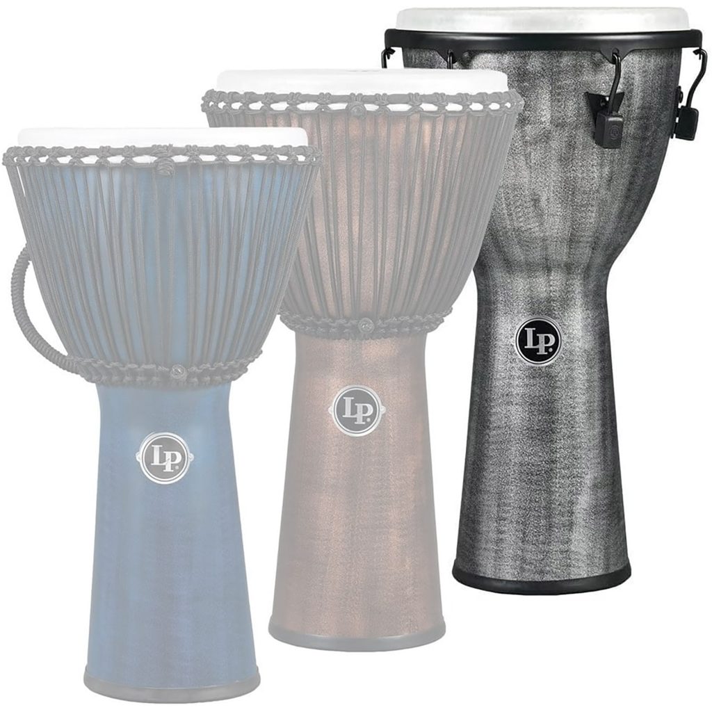 Syntetické djembe Latin Percussion z řady World Beat. Toto djembe má bezešvý syntetický korpus, který dává nástroji jasné a ostré údery a hluboké, bohaté basové tóny. Výška korpusu je 22,5"/57,1 cm, průměr syntetické blány je 11"/27,9 cm. Ladění djembe je klasické provázkové. Barva modelu LP724G je šedá. Syntetické djembe je odolné vůči povětrnostním vlivům a opotřebení. Proto se tento nástroj hodí i na cesty nebo do hudebních škol.