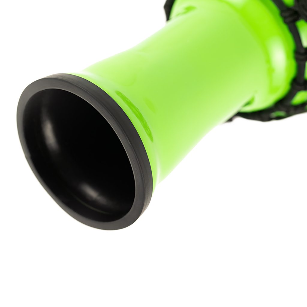 Rozměry djembe: výška 12,5" a průměr blány 7" (31,75 cm × 17,8 cm). Váha 890 g. Barva zelená Green.