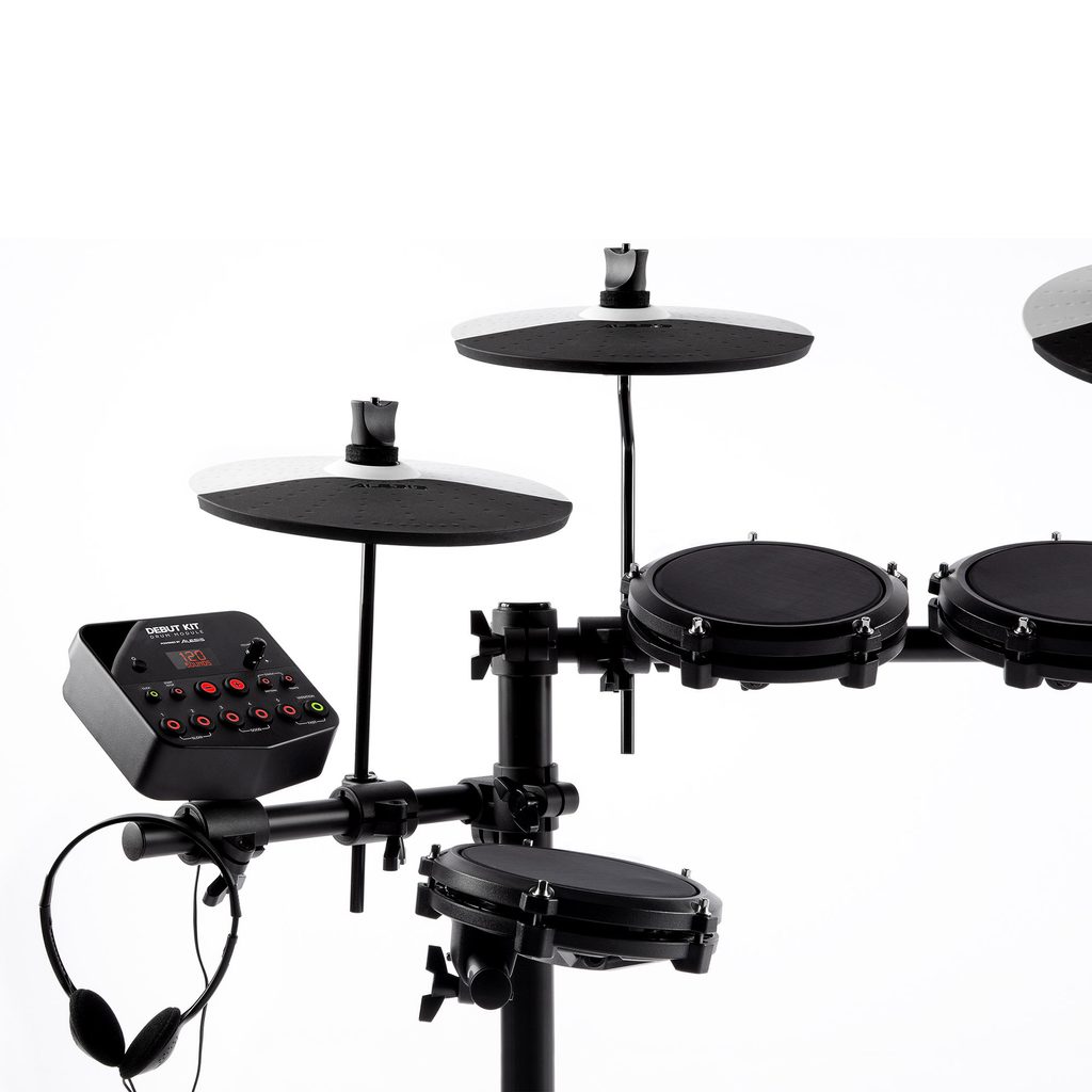 Elektronická bicí sada pro začínající hráče od firmy Alesis. Hra na bicí nebyla nikdy dostupnější! Alesis Debut Kit je kompletní elektronický bubenický systém v jedné krabici. Nejedná se o žádnou hračku – sada Debut Kit obsahuje naprosto vše, co potřebujete, abyste mohli začít okamžitě bubnovat. Balení obsahuje 4× 6" pady bubnů s nastavitelnými síťovými blánami, které mají skvělou odezvu a jsou velmi tiché, bez hluku, jaký známe z gumových padů. Dále zde najdete 3× činelový pad s velkou 10" hrací plochou, takže vám nikdy neunikne žádný úder. Kopák a hi-hat se ovládají nožními pedály, které lze snadno odložit, pokud se nepoužívají. V neposlední řadě je součástí balení nastavitelná bubenická sedačka, sluchátka pro tiché hraní a pár paliček. Alesis Debut Kit stačí rozbalit, sestavit a můžete začít okamžitě hrát.