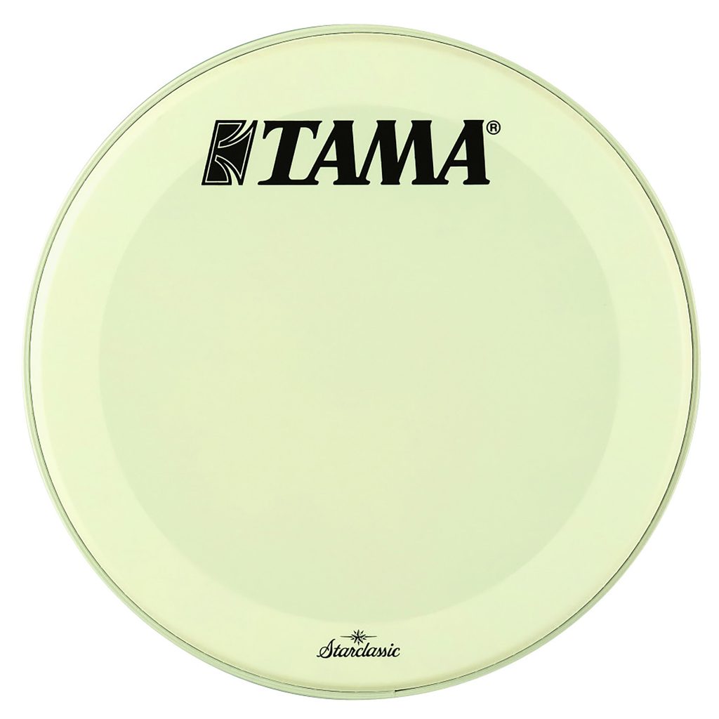 Rezonanční blána na basový buben Tama, bílá s logem TAMA a logem Starclassic. Je vyrobena z jedné vrstvy fólie. Tlumící prstenec pro potlačení nechtěných frekvencí. Průměr blány je 20"/50,8 cm.