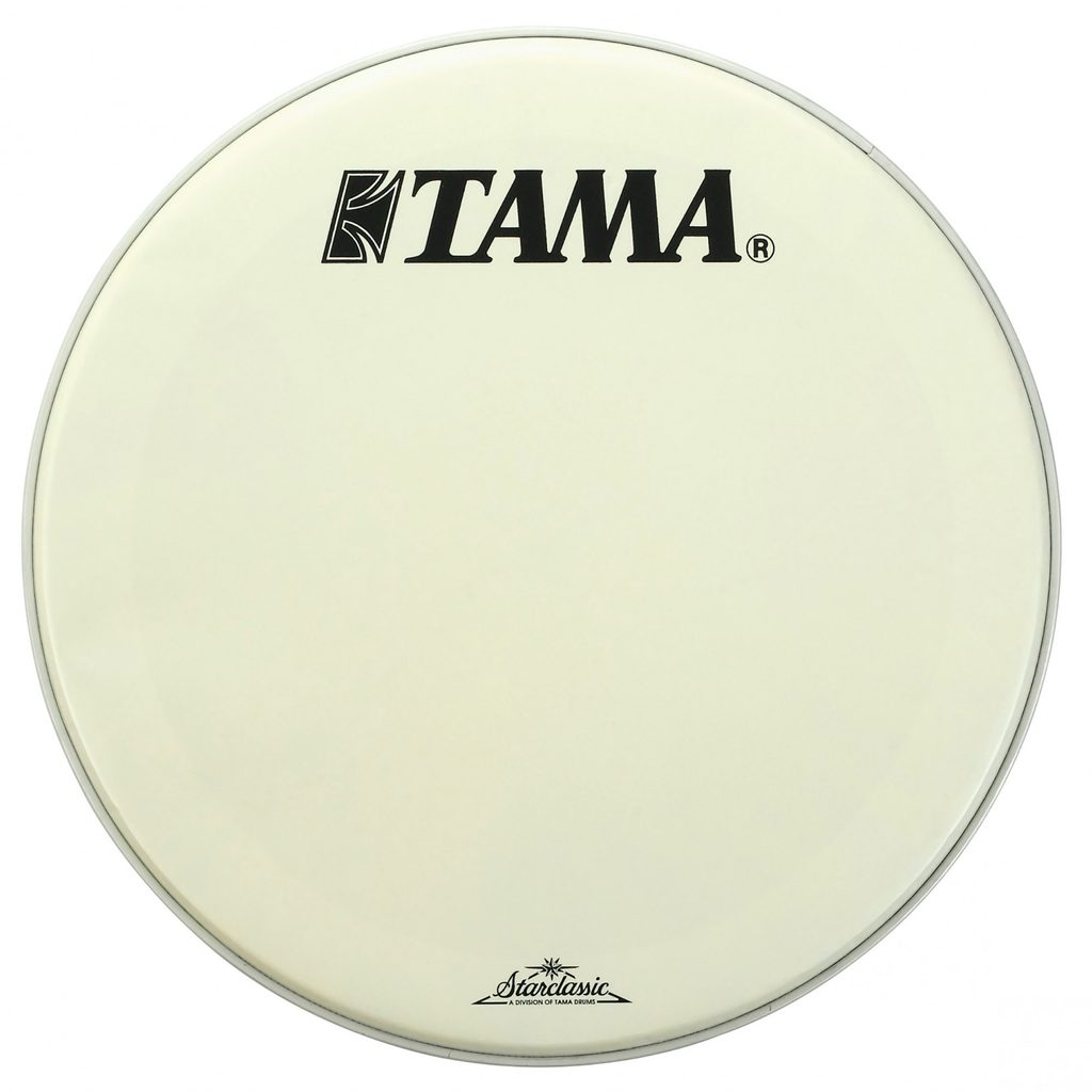 Rezonanční blána na basový buben Tama, bílá s logem TAMA a logem Starclassic. Je vyrobena z jedné vrstvy fólie. Tlumící prstenec pro potlačení nechtěných frekvencí. Průměr blány je 22"/55,88 cm.