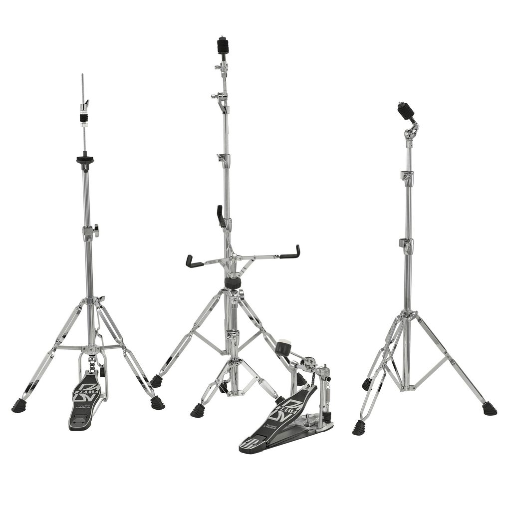 Hardwarová sada Tama z řady Standard. Tato řada představuje cenově dostupný, spolehlivý hardware nejen pro začínající bubeníky. I pokročilejší hráči ho ocení jako hardware pro záložní bicí sadu, pro cvičení nebo do zkušebny. Pedál pro basový buben má pevnou podlážku a jednořetězový převod. Stojan pro hi-hat má tři nohy a hladký chod pedálu. Všechny stojany mají dvojité nohy pro větší stabilitu.