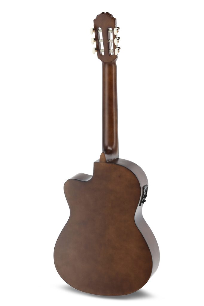 Elektroakustická klasická kytara se zabudovaným snímačem a nylonovými strunami. Tělo standardní klasická kytara (španělka) se standardním úzkým tělem. Aktivní piezo snímač zabudovaný v kobylce, EQ - 4 pásma a zabudovaná ladička. Nylonové struny, menzura 650 mm, šíře sedla 52 mm. Povrch matný lak - tmavý ořech.
