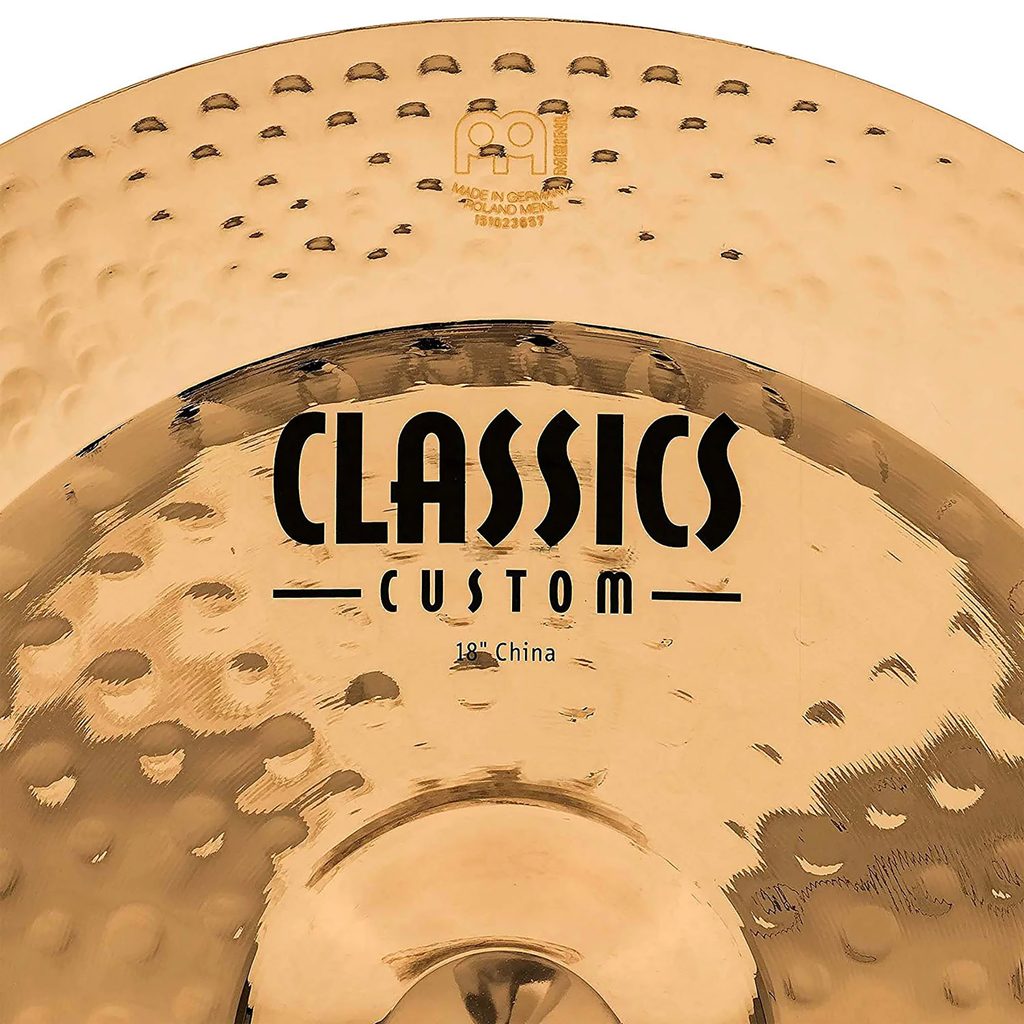 Profesionální činel Meinl z řady Classics Custom Brilliant Finish, čína, průměr 18"/45,72 cm. Je vyroben z bronzu B12, váha Thin. Má jasný, muzikální, výše laděný tón se středním sustainem.