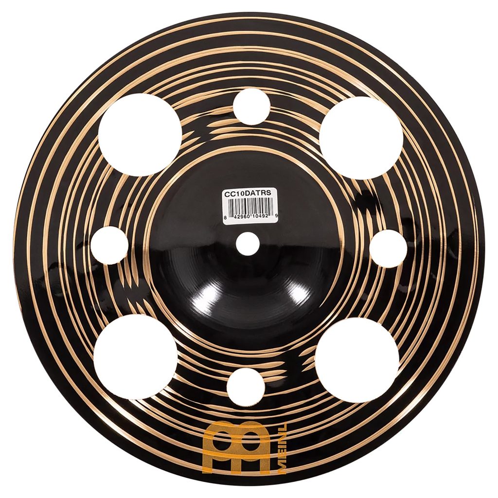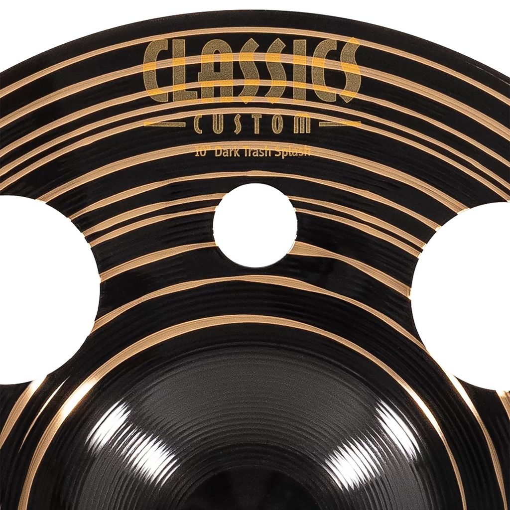 Splash činel Meinl. Je vyroben z bronzové slitiny B10 (90 % mědi, 10 % cínu) s vynikající zvukovou kvalitou a efektním designem. Výbušný, dynamický činel pro energicky hrající bubeníky. Je vhodný zejména pro hudební styly jako metal, pop, rock, fusion apod. Ladění je nižší až střední, temnější „trash“ zvukový charakter. Střední až vyšší hlasitost, krátký sustain. Efektní černý design s extra tepáním. Tato povrchová úprava je originální, protože je součástí vysoce specializované konečné fáze výroby činelu, nikoliv dodatečným nátěrem, který by se časem otřel nebo opotřeboval. Povrchová úprava činelu Meinl Custom Dark zůstane stále stejná. Hmotnost činelu Thin, průměr 10"/25,4 cm.