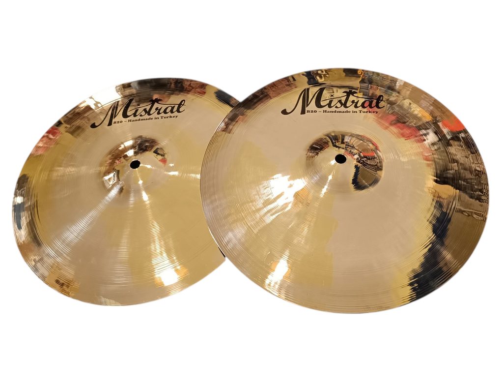 Profesionální bronzový činel Mistral, B20 ruční výroba, 13" hi-hat pár, brilliant povrch