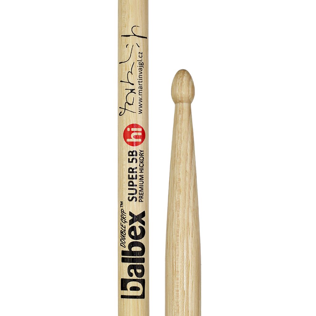 Hikorové paličky od předního českého výrobce Balbex, model firemního hráče Martina Vajgla. Paličky vychází z ověřených rozměrů standardu 5B, mají však o dvě desetiny milimetru rozšířenou úchopovou část a vybalancovaný předek pro maximální účinnost reakce na pohyb ruky. Palička má Double grip – originální zpevňující a protiskluzovou úpravu. Doporučené použití: drumset, jazz, ambient, fusion, rock, orchestral…