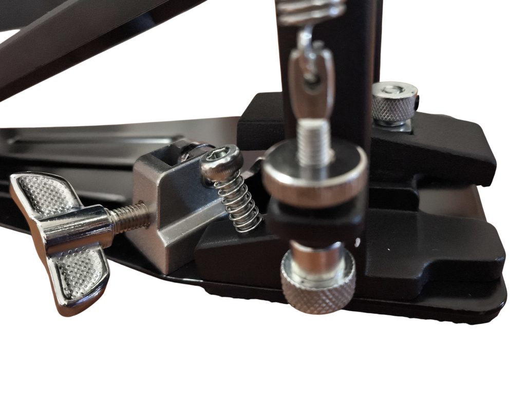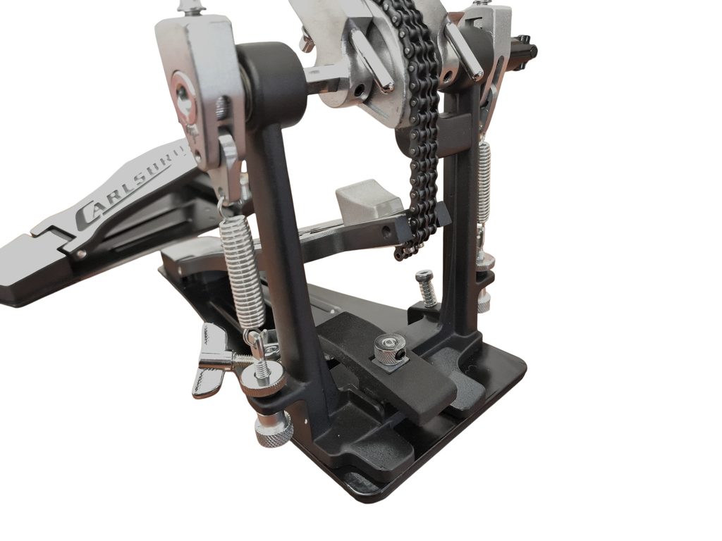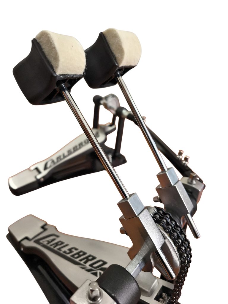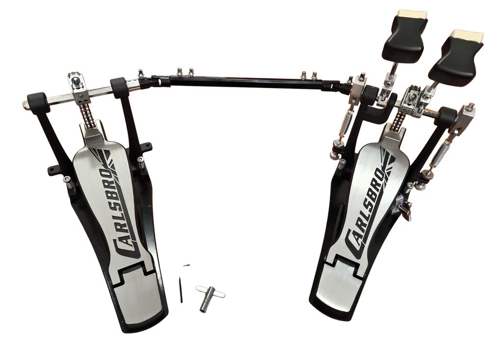 Dvojitý pedál pro basový buben Carlsbro je velmi atraktivní novinkou roku 2025. Jedná se o pedál určený pro začínající a středně pokročilé bubeníky, který v sobě za velmi dobrou cenu nabízí řadu vychytávek a nadstandardní výbavy, kterou běžně najdete pouze u dvojpedálů střední a vyšší třídy, například: pevná podlážka je pod pravým i levým pedálem, komfortní utahování úchytu k basovému bubnu vyvedené bokem a opatřené vlastním motýlem, pohon pedálu zajišťuje dvojitý řetěz, komfortní zavěšení a napínání obou pružin, kovové stavitelné zarážky na tyčce beateru, zarážky pro špičku nohy na nášlapné ploše pedálů nebo teleskopické nastavování délky kardanu na obou stranách. Pedál se dodává s plastovými beatery opatřené z jedné strany filcem, ladícím klíčkem a inbusem na dotahování šroubů. Pedál je vhodný pro elektronické i akustické bicí soupravy.