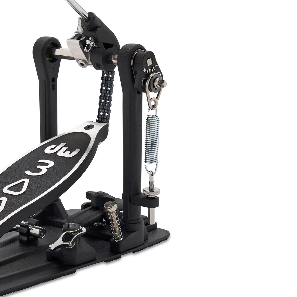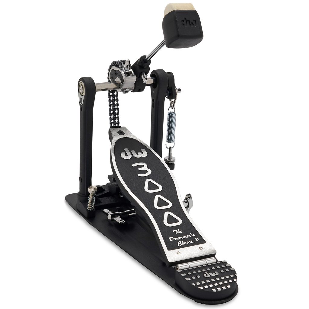 Jednoduchý pedál k basovému bubnu DW z řady 3000 s dvouřetězovým převodem. Již více než 50 let vyrábí společnost DW (Drum Workshop) jedny z nejuznávanějších bubnů, pedálů, stojanů a dalšího bubenického hardwaru. Pedály střední třídy z řady 3000 jsou určeny pro každého bubeníka. Robustní, celokovová konstrukce s ocelovou podlážkou, vysoká kvalita provedení, a přesto za cenu, která není dostupná jen pro profesionály. Model DWCP3000A je inovovaná verze pedálu DWCP3000 a byl vylepšen například novým typem vačky „Accelerator“, nastavitelným úhlem pedálu či protiskluzovou gumou na podlážce pedálu.