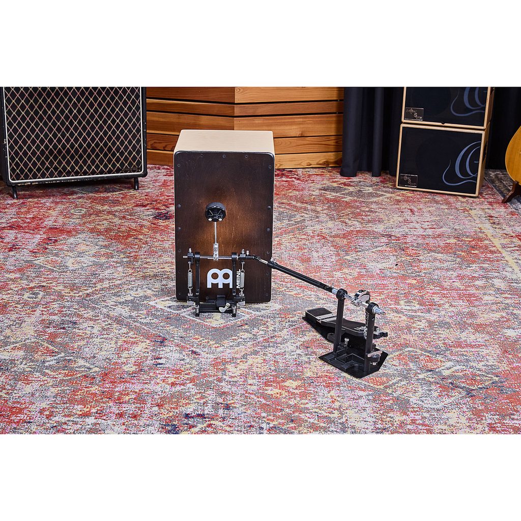 Profesionální pedál Meinl pro hru nohou na cajon s kardanovým převodem. S tímto pedálem se dostane vaše hra na cajon na zcela novou úroveň. Pedál nechává vaše ruce neomezené pro hraní patternů a zároveň hra pedálem udržuje stabilní rytmus kopáku. Tyč má 45° úhel, takže perkusista může pedál umístit jak je obvyklé u bicí sady a spolu s nastavitelným napětím pružiny a měkkým beaterem lze dosáhnout realistického pocitu hry na basový buben. Pedál je navíc vybaven nastavitelným držákem, který umožňuje montáž pedálu na jakýkoli standardní cajon. Pedál lze použít oboustranně, takže ho může využít každý bubeník, ať už je zvyklý hrát na pedál pravou či levou nohou.