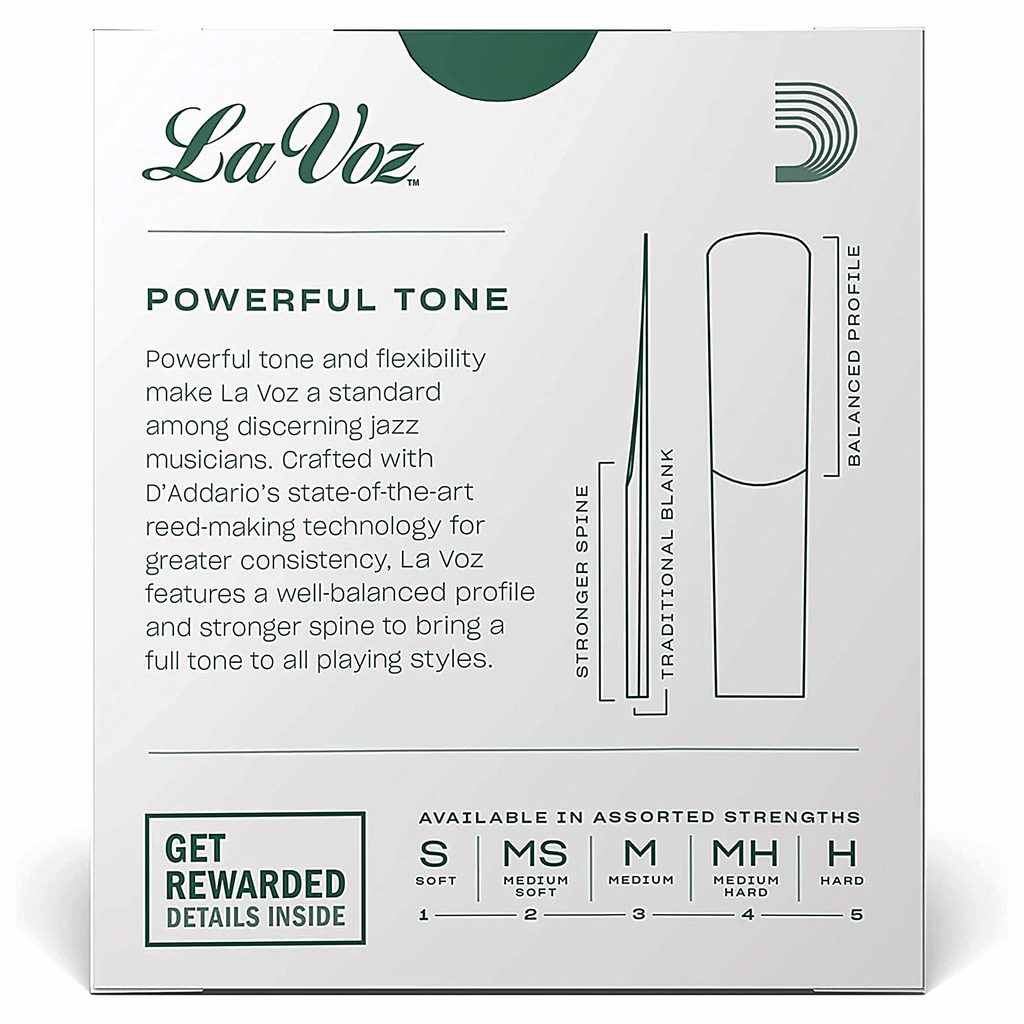 Sada plátků pro alt saxofon od značky D’Addario La Voz (do roku 2004 Rico La Voz). Plátky La Voz jsou volbou mnoha profesionálních saxofonistů po celém světě, kteří oceňují jejich konzistentní kvalitu, bohatý plný tón a výbornou odezvu. Jsou skvělé pro jazz, pop, rock a další hudební žánry. Všechny plátky D'Addario jsou navrženy a vyrobeny v USA z přírodně pěstované třtiny.