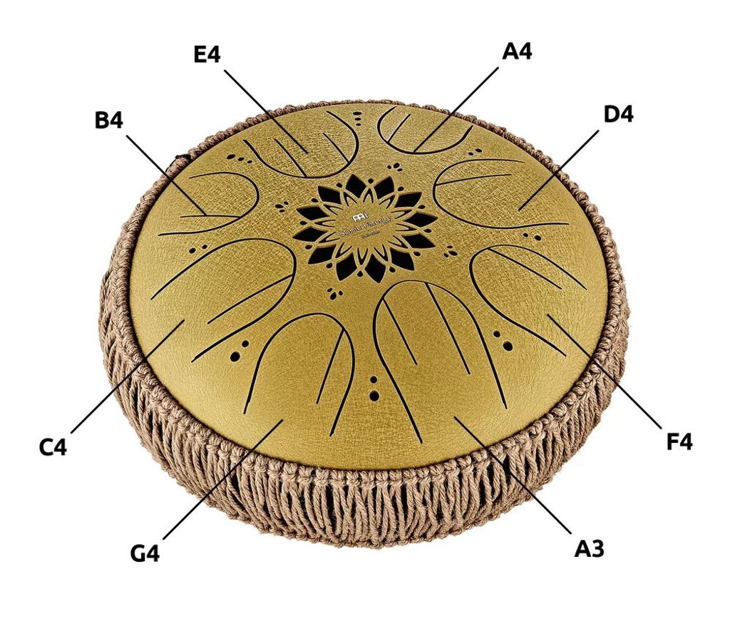 Steel buben Meinl má předladěné tóny, takže na něj může hrát každý, protože neexistují žádné špatné tóny, a zvuk je éterický a uklidňující (asi jako steel pan buben). Součástí nástroje jsou dvě dřevěné paličky s měkkými opletenými gumovými hlavičkami pro plný a klidný tón. Hrát na steel drum lze i prsty. Tento nástroj tak má své místo na terapii, pro cvičení jógy, meditaci, v učebnách nebo na stolku u vás doma, kde poslouží jako hudební nástroj nebo zdroj zábavy pro děti a celou rodinu. Chcete-li začít hrát, jednoduše položte buben na rovný povrch nebo na klín.