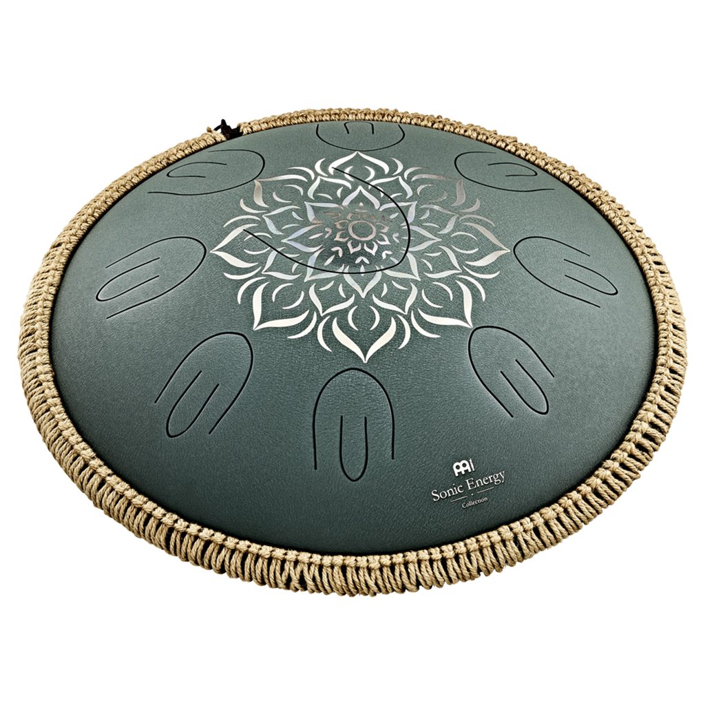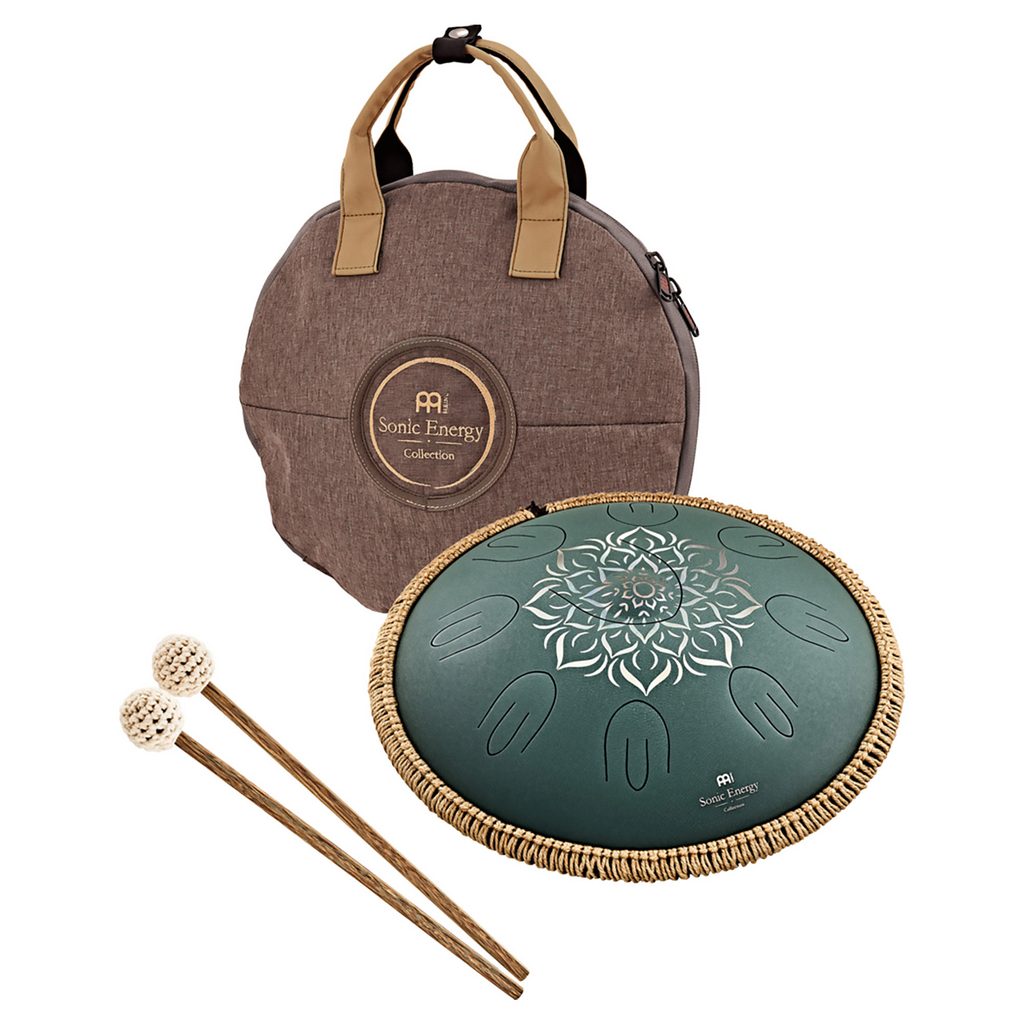 Steel buben Meinl z řady Sonic Energy. Steel Tongue Drum je poměrně mladý perkusní nástroj ze skupiny idiofonů. Úplně první model tohoto nástroje byl vyroben z prázdné propanbutanové bomby, proto se Steel Tongue Drum někdy dodnes říká Tank Drum. Tyto bubny mají dutý ocelový korpus, na jehož horní straně je vyříznuto sedm až deset kruhově uspořádaných tónových polí, která vypadají jako jazyky. Úderem se tyto jazyky rozechvívají, což v kombinaci s dutým tělem vytváří uklidňující, meditativní zvuk. Meinl Sonic Energy Octave Steel Tongue Drum je vyroben z vysoce kvalitní nerezové oceli. Uprostřed je centrální basový tón a kolem něj osm dalších tónů. Těchto osm not se skládá ze dvou jazýčků, které předávají tón ve dvou oktávách. To vytváří nádherný, meditativní zvuk podobný tónu bubnů hand pan. Na spodní části bubnu najdete zvukový otvor, který lze uzavřít silikonovým uzávěrem, aby byl zvuk ještě kompaktnější. Na spodní straně jsou také tři silikonové nožky, které zabraňují klouzání bubnu. Je dodáván v sadě s párem gumových paliček s dřevěnými rukojeťmi a ochranným bavlněným sáčkem s logem a zatahovací šňůrkou.