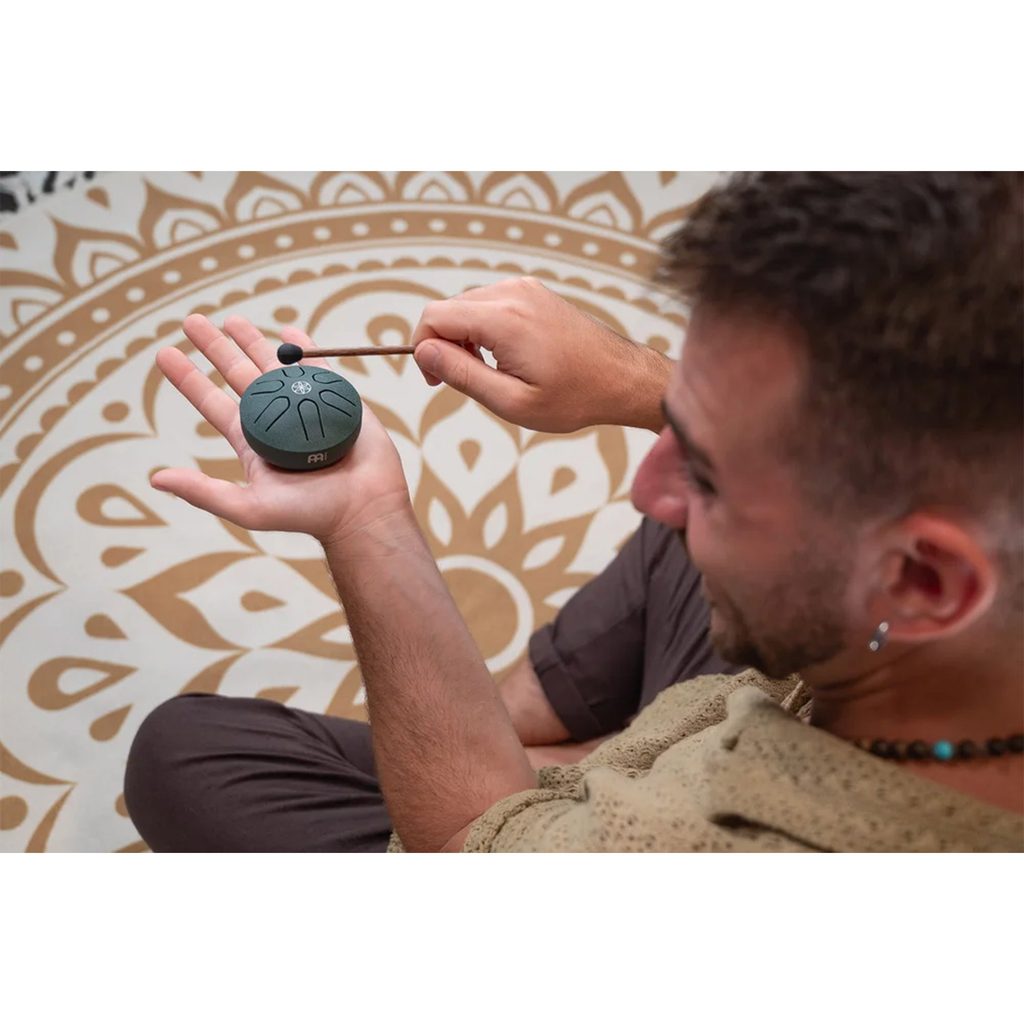 Kapesní steel buben Meinl je vyroben z nerezové oceli s krásnou tmavě zelenou povrchovou úpravou a má průměr 3"/7,6 cm. Součástí nástroje je palička s měkkou gumovou hlavičkou. Model PSTD4DGGOL má ladění v tónině A dur / 440 Hz (A5, B5, C#6, E6, F#6, A6). Součástí bubnu je dřevěná palička sgumovou hlavičkou.