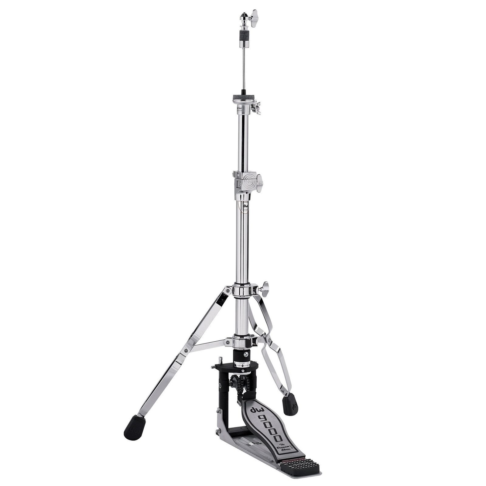 Profesionální stojan hi-hat DW z řady 5000. Dvě dvojité nohy pro vysokou stabilitu stojanu, nohy lze otáčet kolem základny. Paměťové objímky DW. Možnost naklonit spodní činel. Bezpečné uchycení činelů. Převod řetězový.