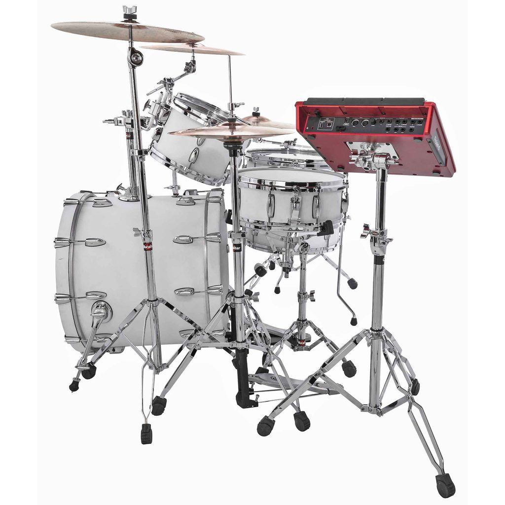 Stojan pro modul elektronických bicích od firmy Gibraltar z řady 6700. Řada 6700 kombinuje nejlepší funkce řad 9600 a 6600 do jedné. Má robustní konstrukci, ale stále dostatečně nízkou hmotnost pro snadnou přepravu. Stojan má dvojité nohy pro větší stabilitu. Můžete ho použít pro hru vsedě i vestoje, protože je výškově nastavitelný v rozsahu 67–94 cm a má paměťový zámek pro snadné nastavení. Integrujte snadno elektronické pady, modul nebo kontrolér elektronických bicích do vaší soupravy: stojan je vybaven univerzální svorkou (clampem). Pro umístění modulu použijte například montážní desku Gibraltar SC-EMMP (není součástí dodávky!) a tak můžete na stojan připojit některý z kompatibilních modulů. Nebo použijte jinou montážní desku či držák, které jsou určeny právě pro váš modul, a ty pak připevněte ke stojanu clampem a nastavte do požadované polohy.