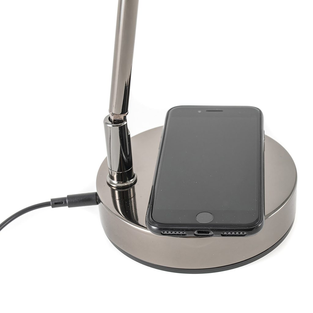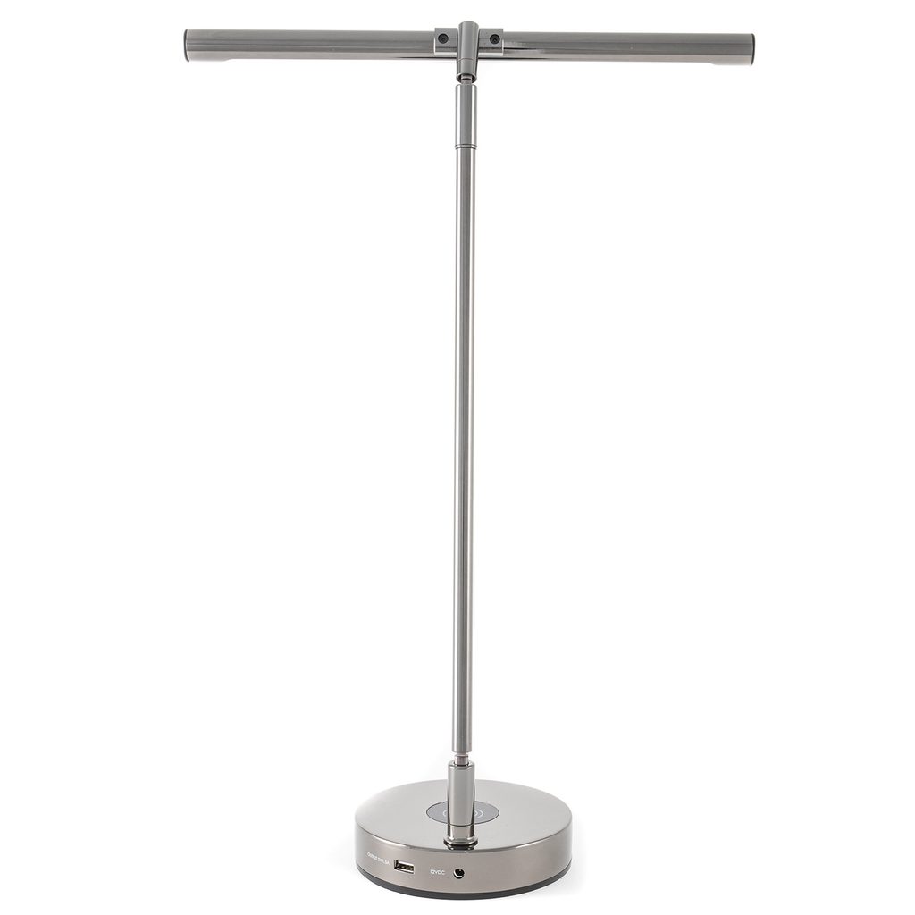 Lampička ke klavíru GEWA. Lampičky GEWA pro klavír nejsou jen funkčními zdroji světla, ale díky svým sofistikovaným vlastnostem jsou také designovým doplňkem každého klavíru. Dotykové senzory v hlavě lampičky vás zbaví nutnosti nahmatávat běžné spínače na těžko přístupných místech. Plynulá regulace jasu a teploty barev úsporných LED diod umožňuje všem klavíristům individuální nastavení pro ideální osvětlení not a klaviatury. Základna s podporou QI a připojením USB-A nabíjejí váš smartphone nebo tablet během hraní. Barva černý chrom.