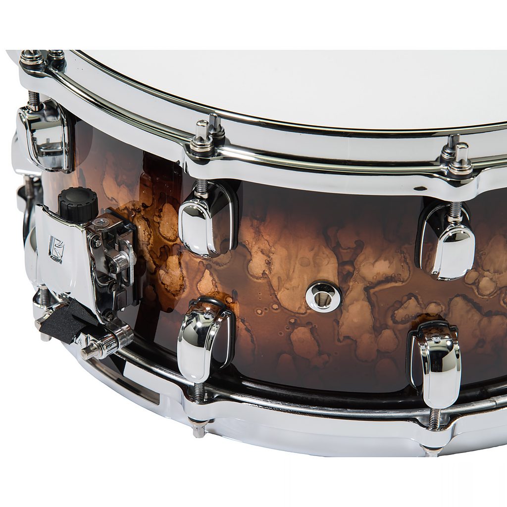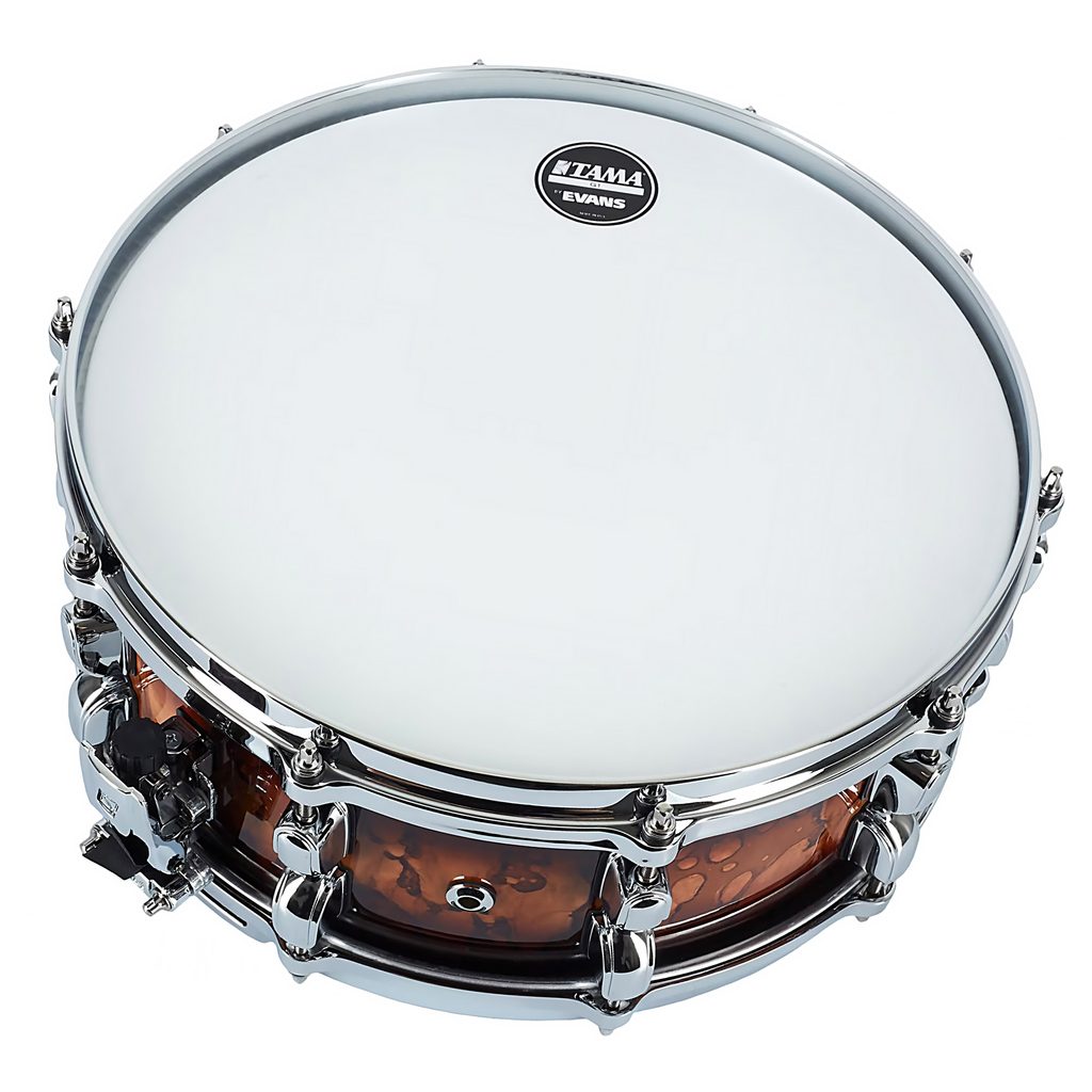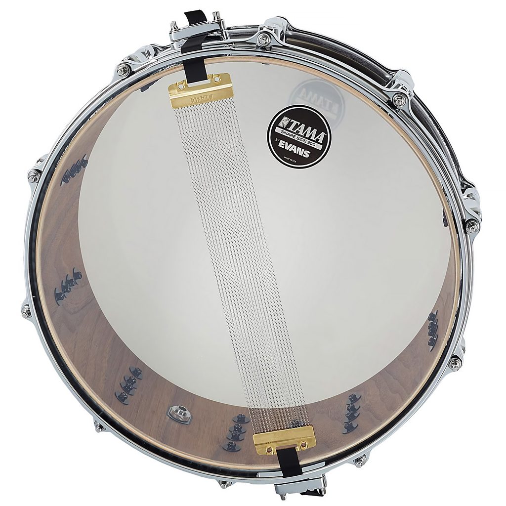 Snare buben Tama z řady Starclassic, 14" × 5,5". Hybridní korpus o celkové tloušťce 6 mm je vyrobený ze 4 vrstev břízy a 2 vrstev černého amerického ořechu. Snare Starclassic Walnut/Birch tak má silný, konkrétní zvuk, který kombinuje jasný atak a projekci břízy s vřelostí středních tónů ořechu. Tento snare má krásnou lakovanou povrchovou úpravu Molten Brown Burst (MBR). Ráfky snare jsou lité, hardware je chromovaný. Buben je osazen blánami Evans G1.