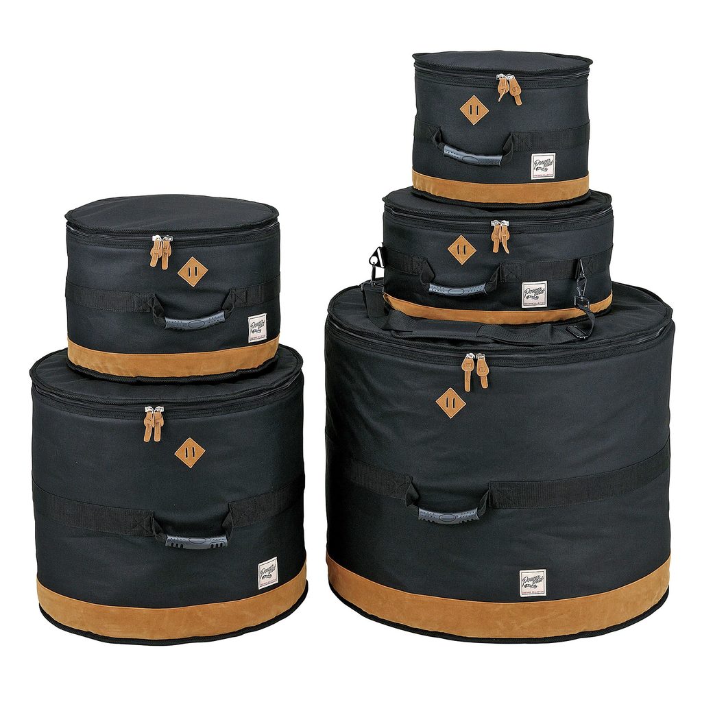 Designová sada obalů Tama z řady Powerpad. Jde o měkké stylové obaly, vyrobené z odolného nylonu, který ochrání hardware proti škrábancům a odření při transportu. Mají 10 mm vnitřní polstrování. Pohodlná ergonomická ucha pro transport. Obal na snare má navíc i popruh přes rameno. Barva černá, semišové ozdoby. Tato sada je určena pro standardní bicí soupravu: bass drum 22" × 18", floor-tom 16" × 16", tomy 12" × 9", 10" × 8", snare drum 14" × 6,5".