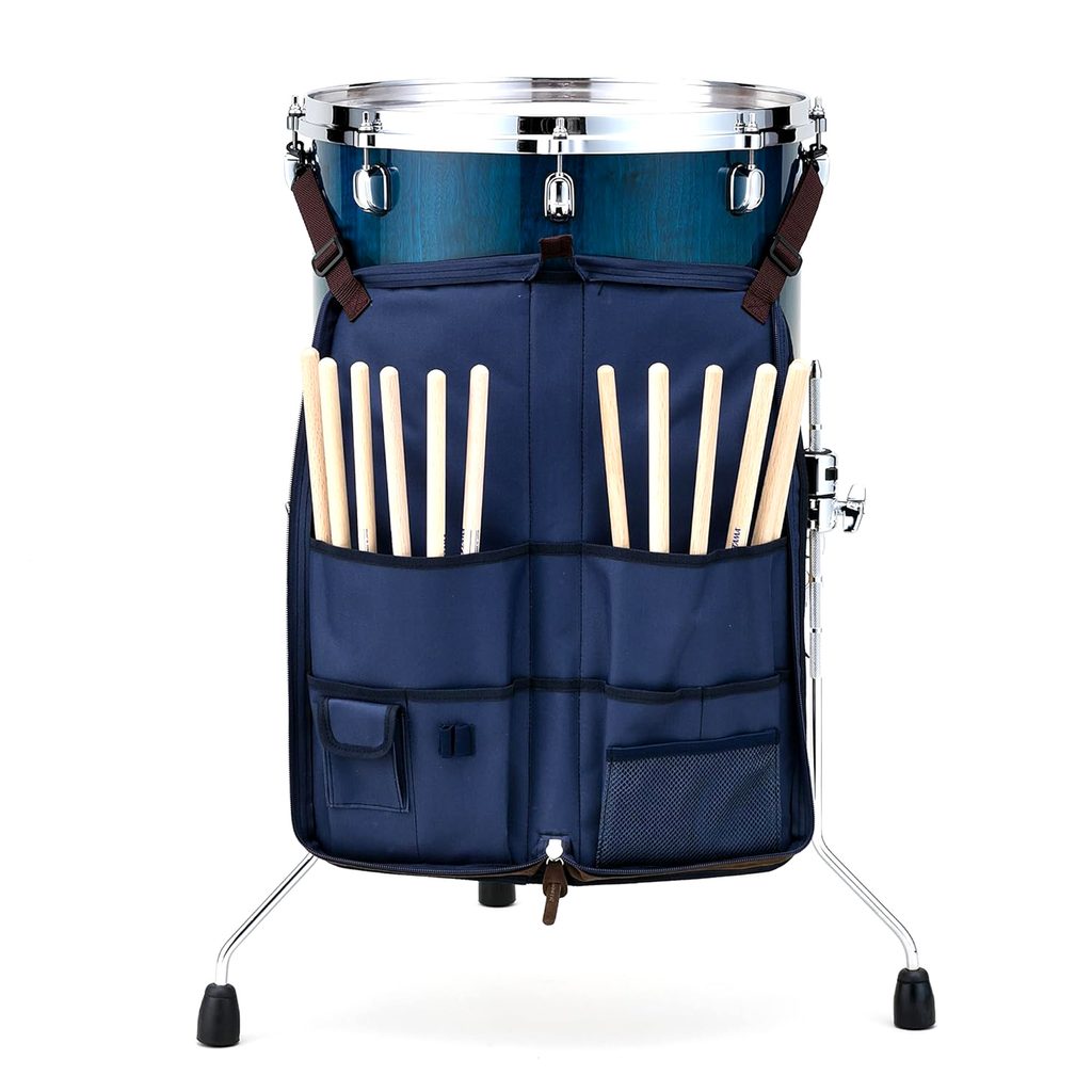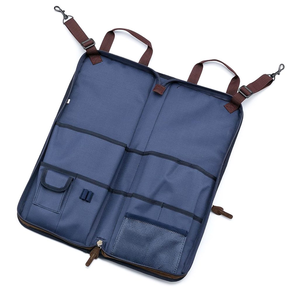 Obal na paličky Tama z řady Powerpad Designer. Tato řada obalů Tama nabízí elegantní design kombinující nylon v několika barevných variantách a semiš. Obal je určen až pro 12 párů paliček a má přídavnou vnější kapsu i vnitřní malé kapsičky na drobnosti. Integrované popruhy s karabinami umožňují snadné připevnění obalu na floor tom, aby vaše paličky byly vždy při ruce. Barva tmavě modrá (Navy Blue).