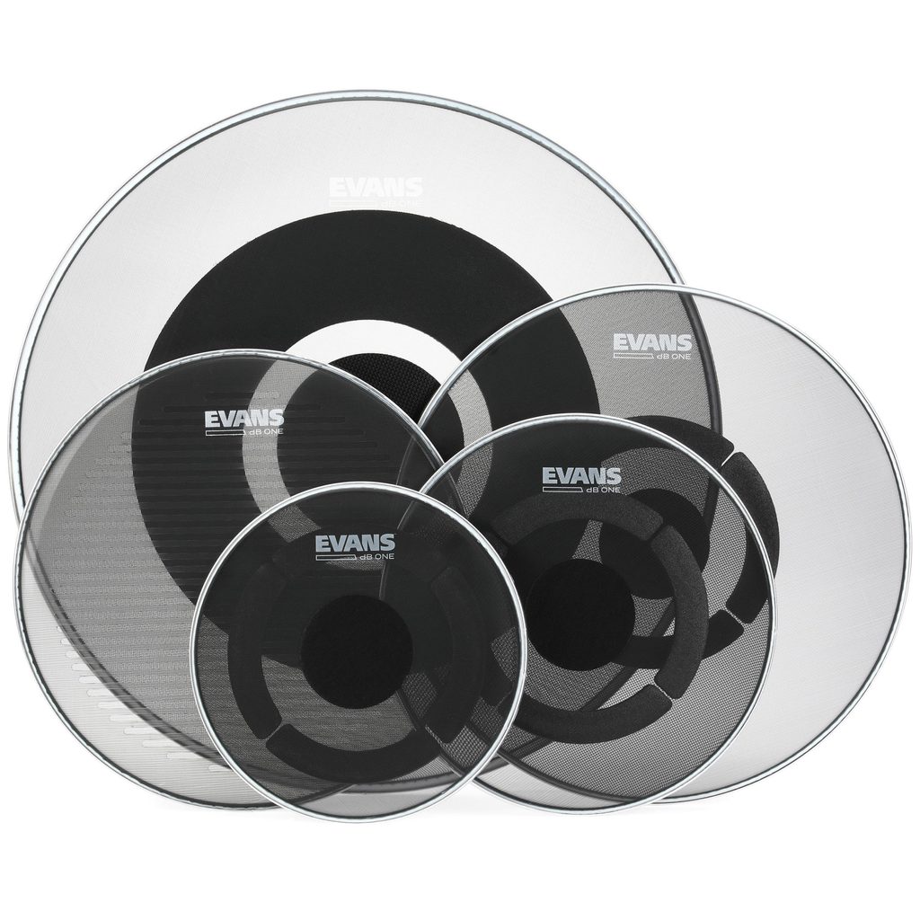 Sada cvičných tichých blan Evans dB One na akustickou bicí sadu, Rock pack 10", 12", 16" a 22" + 14". Blány Evans dB One jsou cvičné blány, kdy se společnosti Evans podařilo spojením několika technologií snížit hlasitost bicích o 80 % a přitom zachovat plnohodnotný tón soupravy. Nabízejí naprosto věrný akustický tón a pocit při hře. dB One jsou špičkové síťované cvičné blány, zkonstruované tak, aby bezchybně přenášely energii úderu na zvukové vibrace. S blánami Evans dB One můžete cvičit přirozeně a tiše, kdykoli a kdekoli chcete.