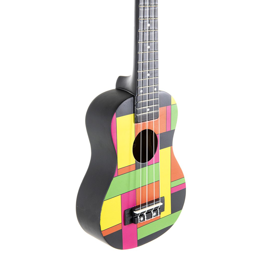 Sopránové ukulele Black neon - Square design, včetně pouzdra