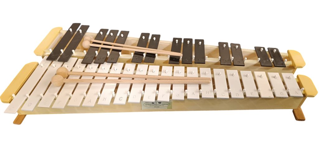 Chromatická zvonkohra českého výrobce G+W pro pokročilé s rozsahem c1–a3. Má 20 bílých plus 14 černých kamenů šířky 25 mm. Součástí dodávky jsou 2 paličky.